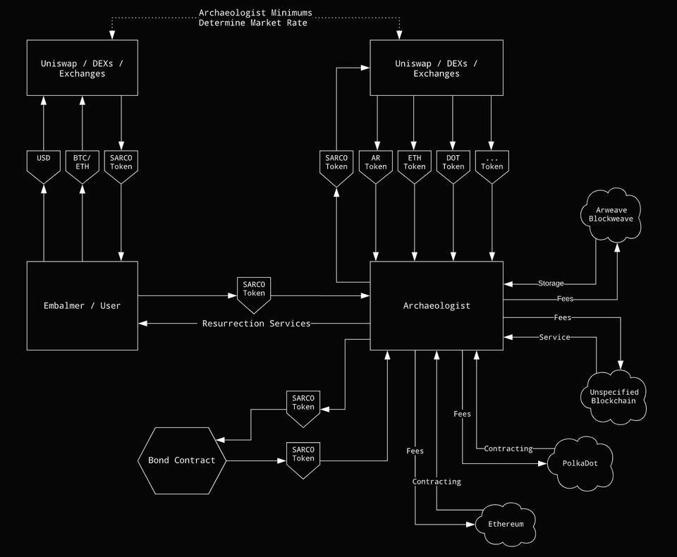 Sarcophagus 协议运作机制中 SARCO 代币和所需其他代币的流向解析
